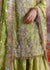 Reha evokes the grandeur of a bygone era, where every detail was a testament to festivity. The shirt glistens with intricate zardozi work, its surfaces enlivened with delicate accents of colored thread. Playful handmade tassels dangle in gentle motion, like jeweled whispers echoing the liveliness of mehfils past. The dupatta unfurls as a tapestry of nostalgia, bordered richly on all four sides, its expanse scattered with a dense spray of sequins and mukaish. The edges, kissed with delicate kiren, recall the heirloom finishes of treasured trousseaux, carrying with them the romance of old-school charm. Anchoring the ensemble is a farshi gharara, opulent in sweep and grandeur. Its voluminous flare is scattered with embellishment, culminating in a hem weighted with resplendent gota, each stripe gleaming with the brilliance of molten gold. A matching pouch is a final accent that echoes its vintage soul, proving no detail is left untouched.