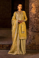 The teal organza shirt is beautifully crafted with intricate embroidery on both front and back panels, enhanced with embroidered borders. The screen printed Korean raw silk sharara adds a graceful and traditional appeal, while the embroidered dupatta with borders completes the look with elegance. This outfit is perfect for festive occasions
